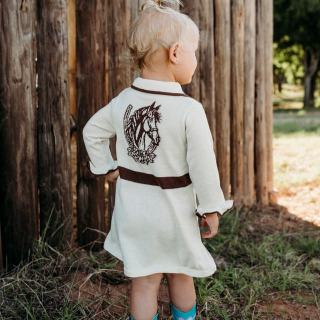 This beautiful Horseshoe Sweater Dress is the perfect addition to any Fall and Winter wardrobe! This dress will leave your little one warm, classy and stylish!
