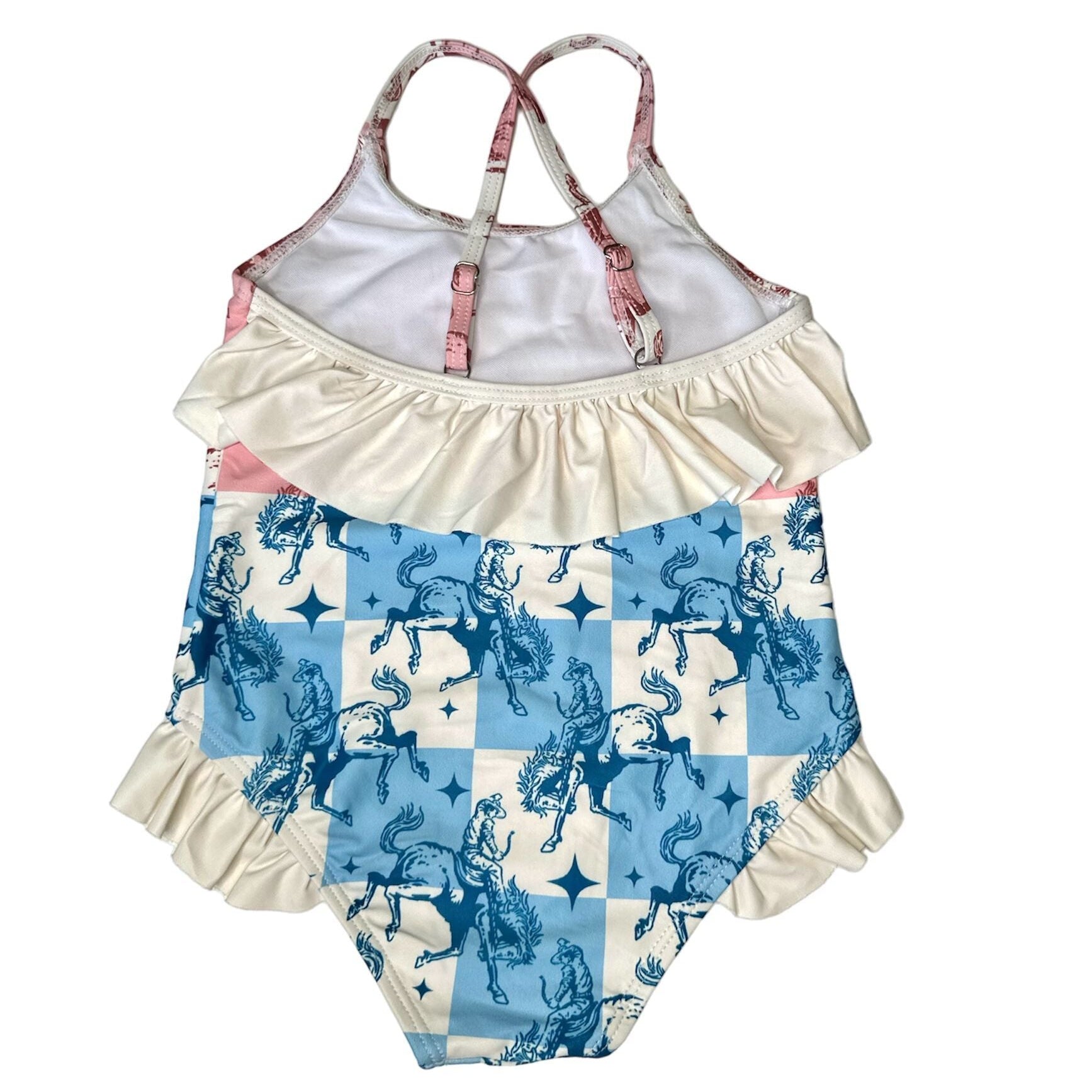 Make a splash with western flair! Comfortable, durable and stylish, this swimsuit is ideal for pool days or beach trips, its a must have for some summer fun!