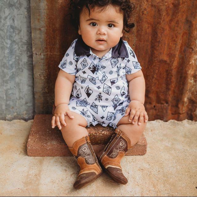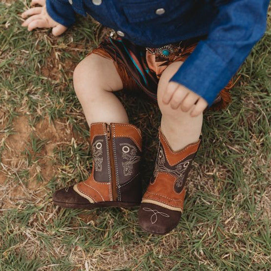 Looking for a classic boot? Our “River” baby boot is as classic as they come! A brown leather boot embroidered with a classic stitch and accents. “River” is truly perfect for any occasion and a staple to every little guys wardrobe.