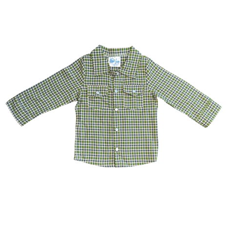 YOUTH Green Plaid LS Pearl Snap Shirt, Size 8-12 ( Sold pack of 6)